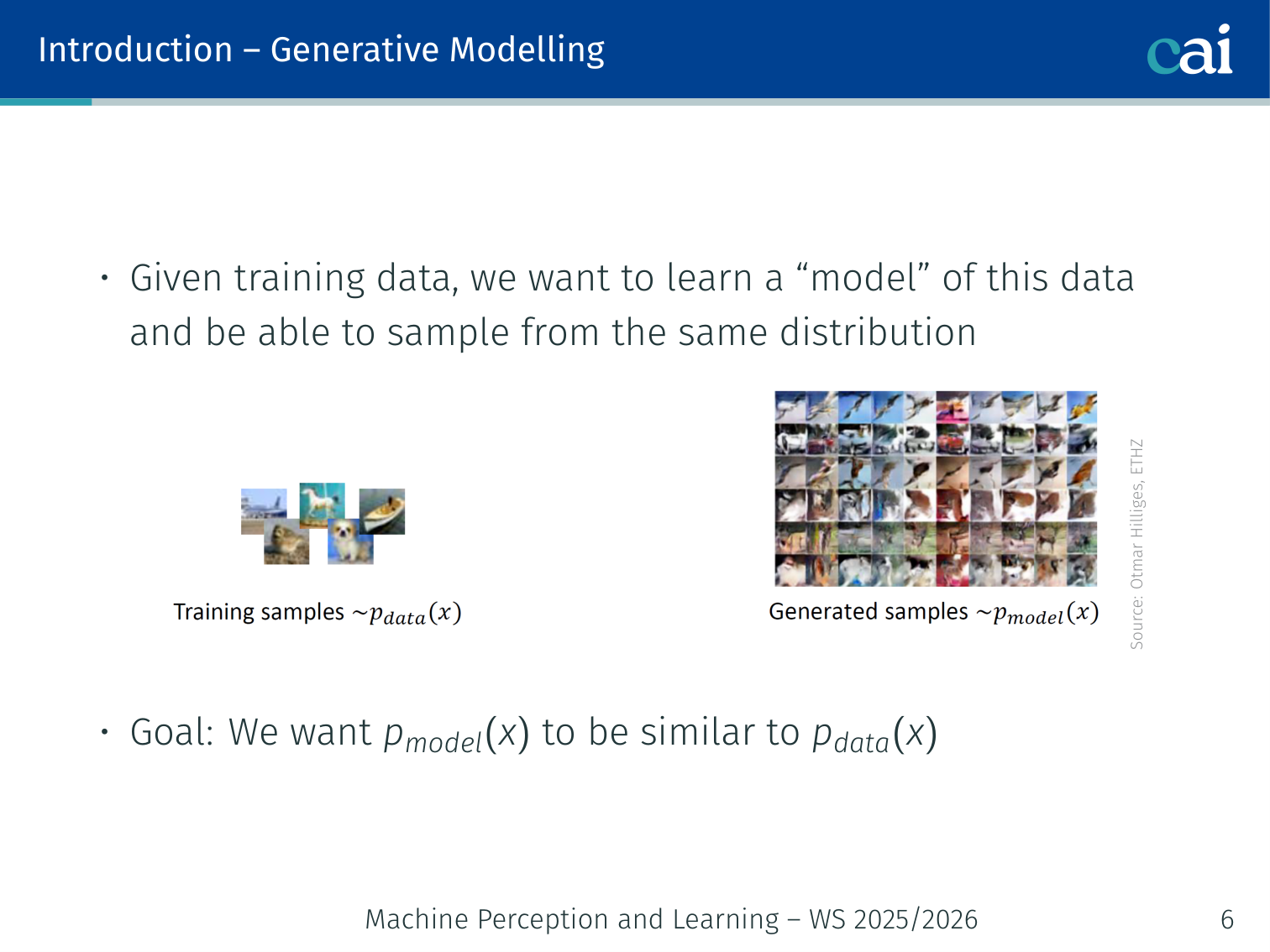 Generative modeling in a nutshell: learning to sample from our data distribution p(x).