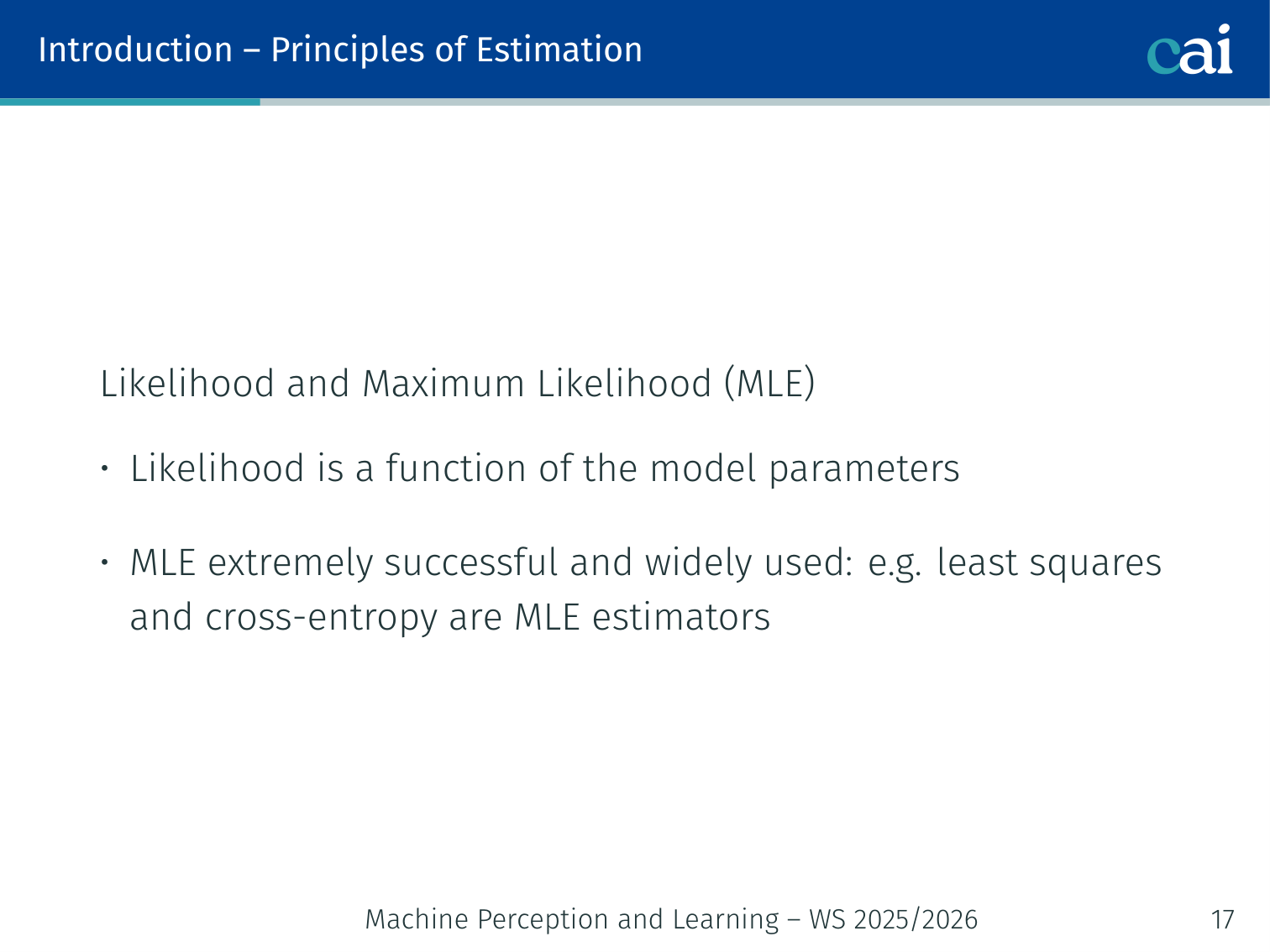 MLE is the backbone of supervised deep learning — cross-entropy and least-squares are both MLE estimators. Generative models extend this to the unsupervised setting.