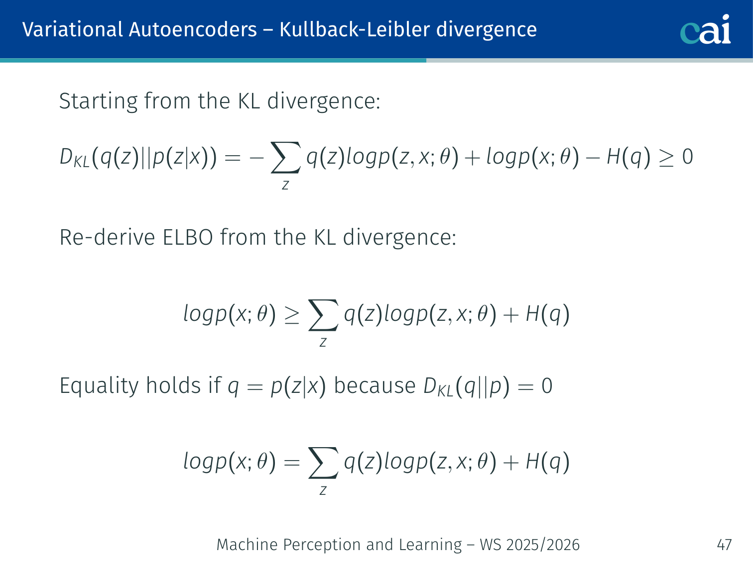 - The KL term is what turns a useful compression model into a generative model with a smoother, more navigable latent space.