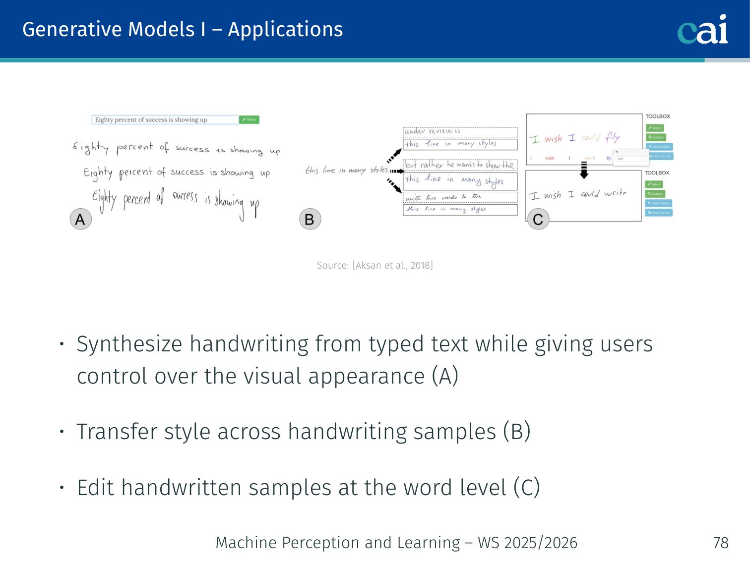 - (A) Synthesize handwriting from typed text while giving users control over visual appearance (style)