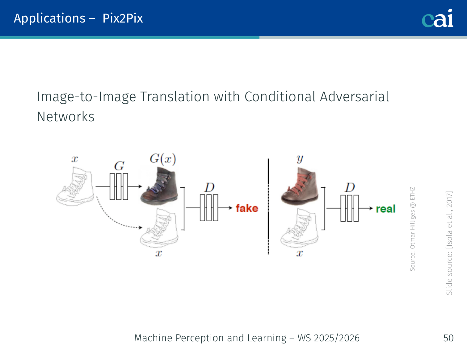 | Pix2Pix | Condition on paired images | Isola et al., 2017 |