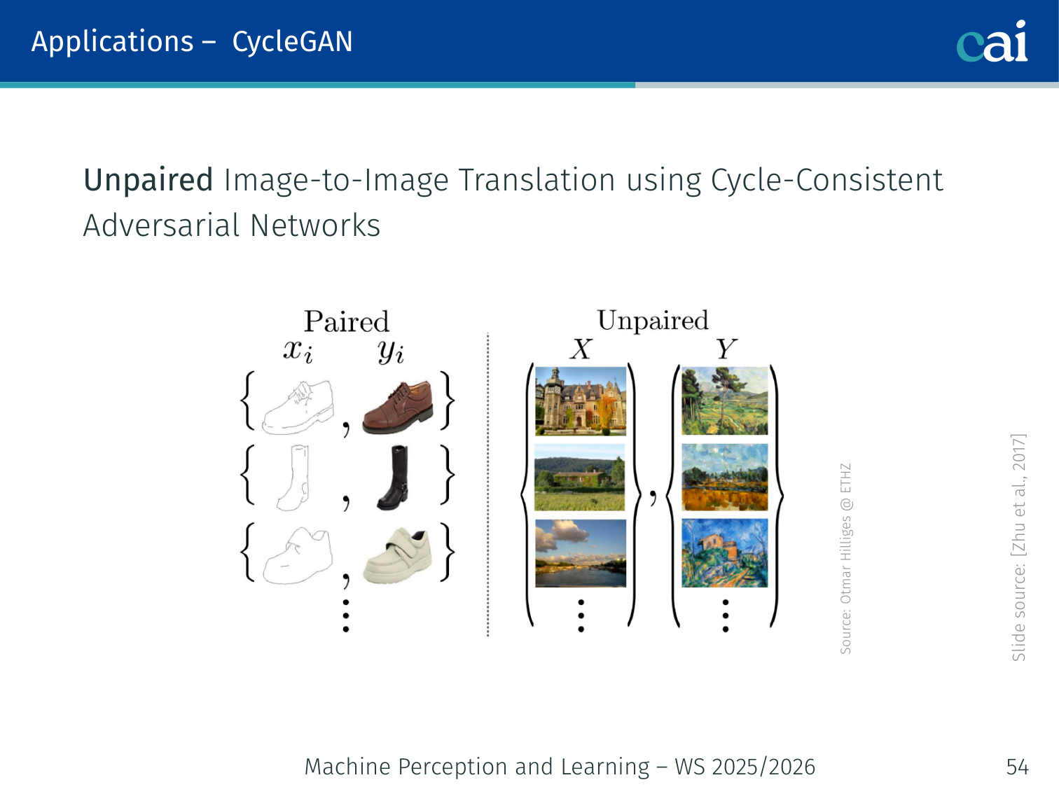 | CycleGAN | Unpaired translation via cycle-consistency | Zhu et al., 2017 |