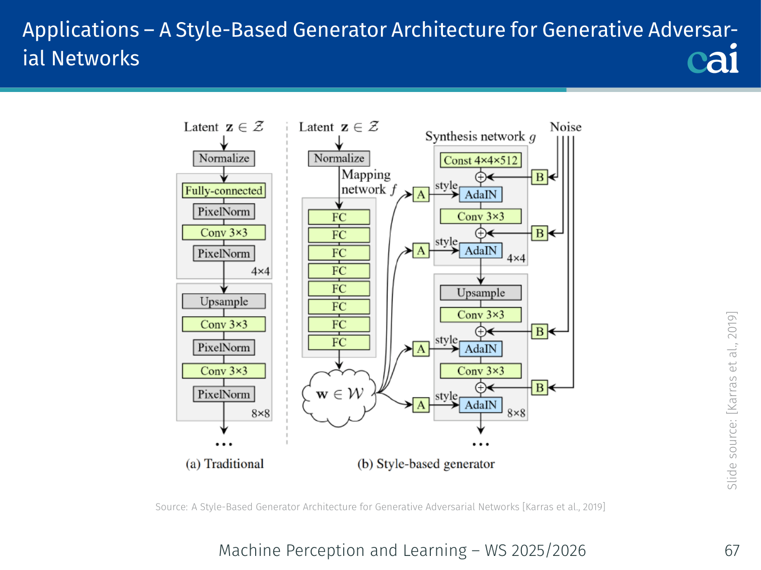 - Karras, Laine, Aila (2019). A Style-Based Generator Architecture for Generative Adversarial Networks. CVPR.