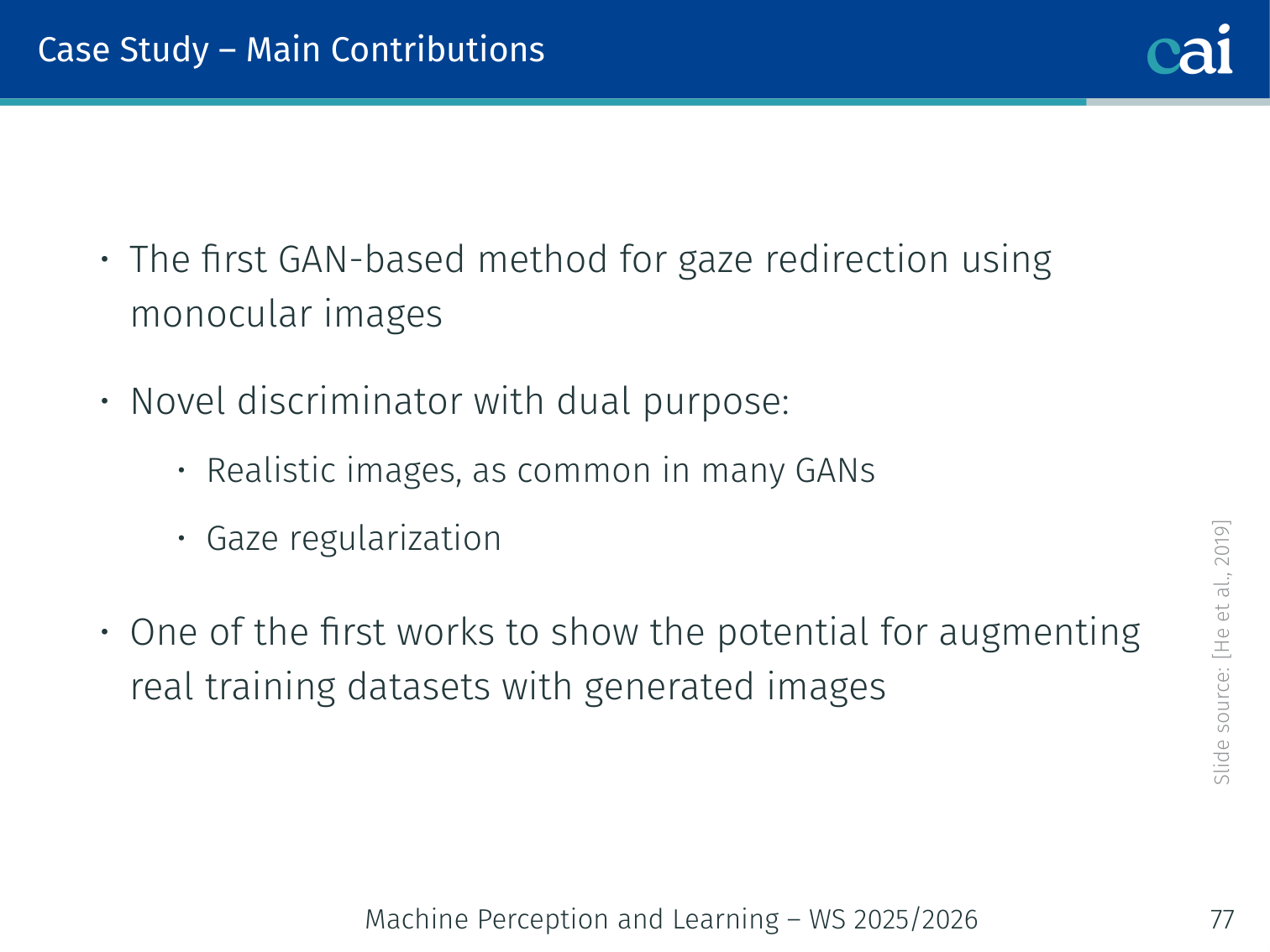 - Novel dual-purpose discriminator — judges both realism and gaze direction