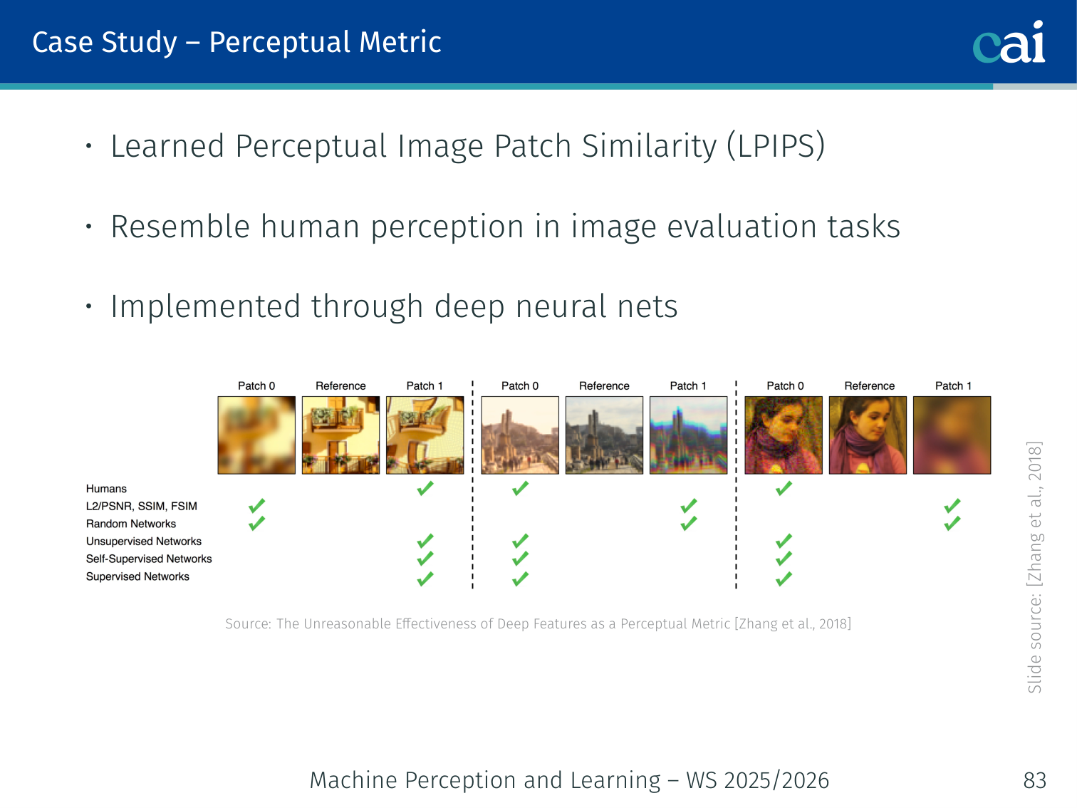 - Zhang, Isola, Efros, Shechtman, Wang (2018). The Unreasonable Effectiveness of Deep Features as a Perceptual Metric. CVPR.