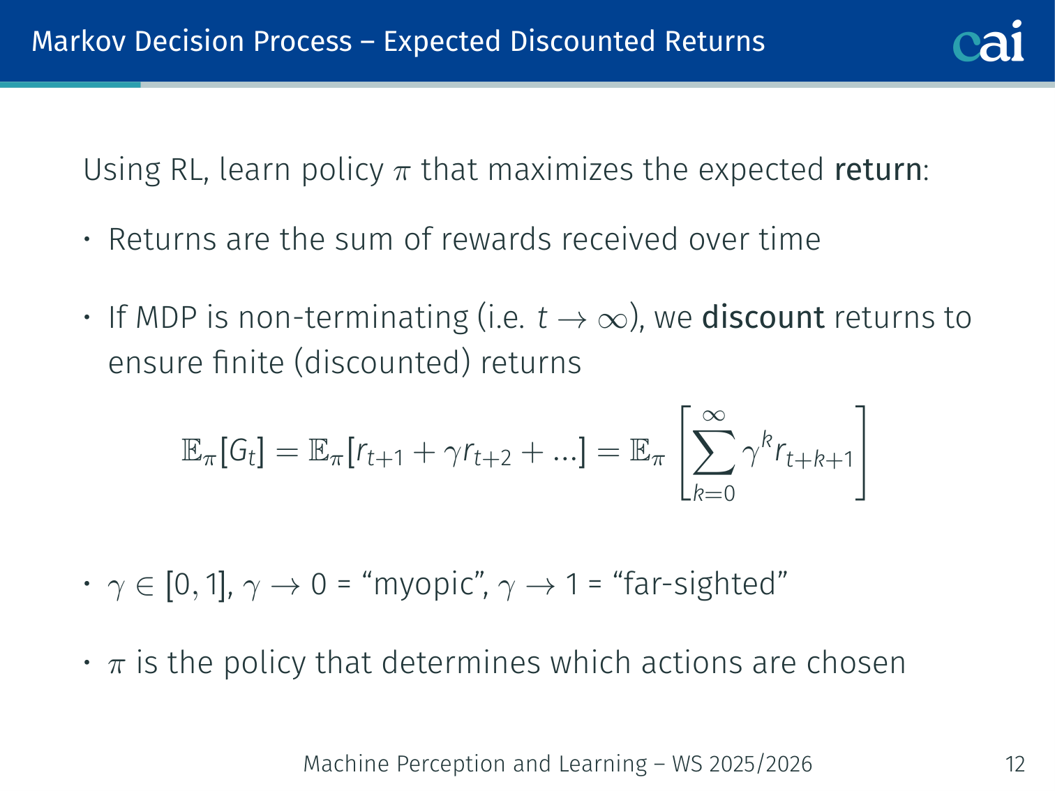- RL is about delayed credit assignment: an action now may only reveal its value much later.