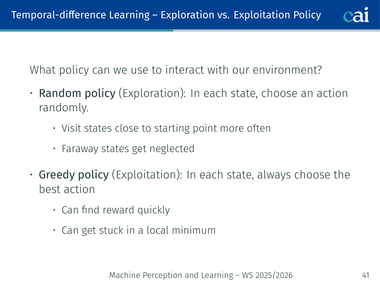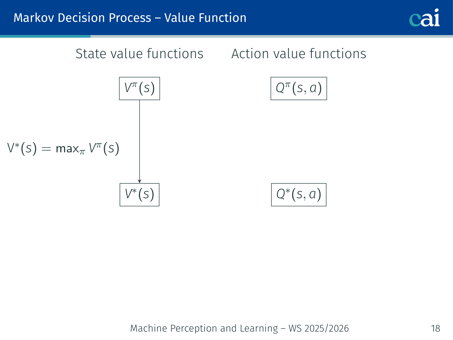 - Value functions estimate how promising a state or action is in the long run; policies decide what to do next.