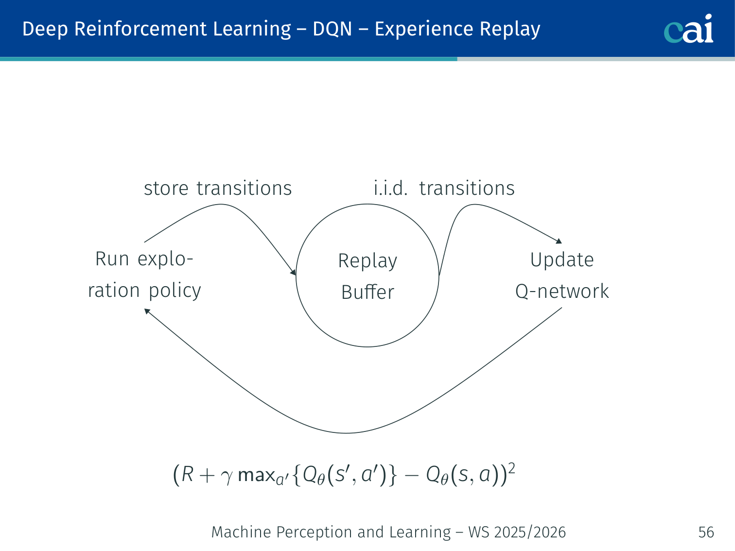 | DQN | Deep value-based | Neural Q-function + experience replay + target network |