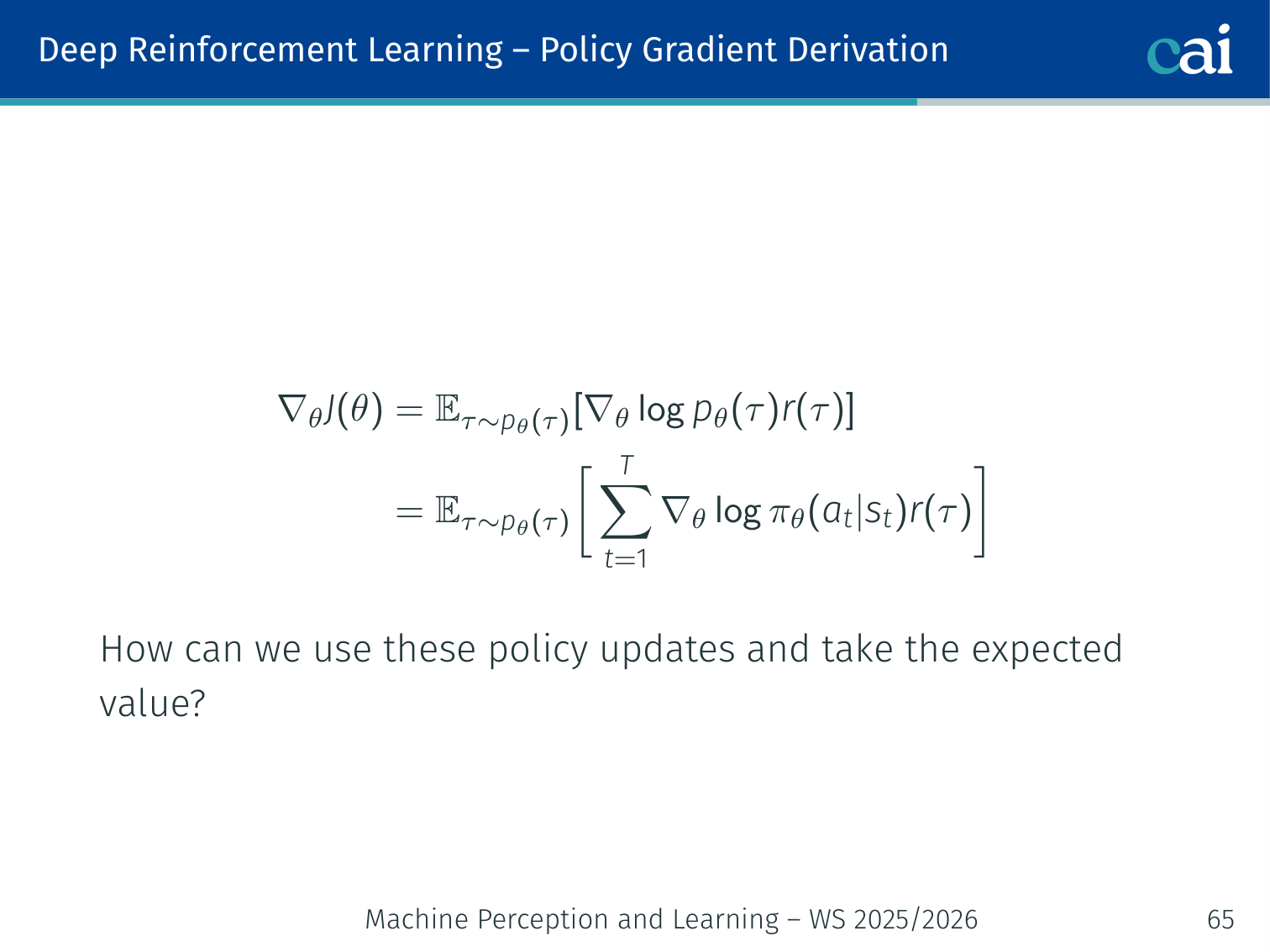 Goal of this lecture: Go from first principles all the way to PPO — one of the most widely used RL algorithms today.