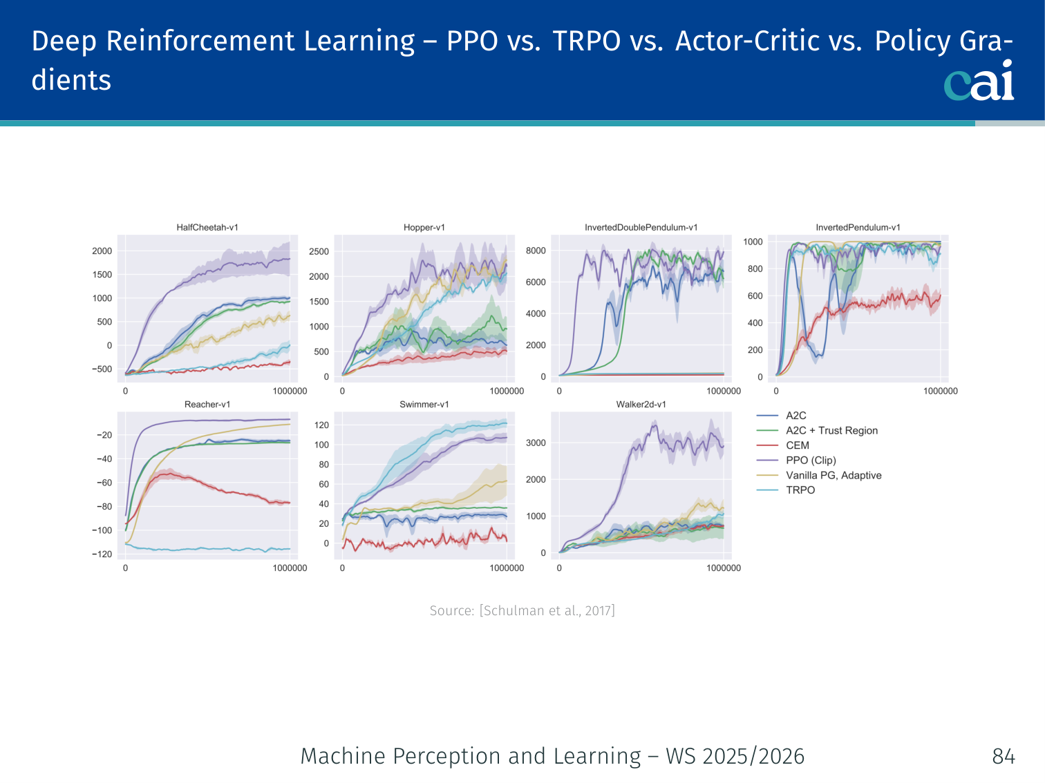 | Locomotion and continuous control | PPO / TRPO | Schulman et al., 2017 |
