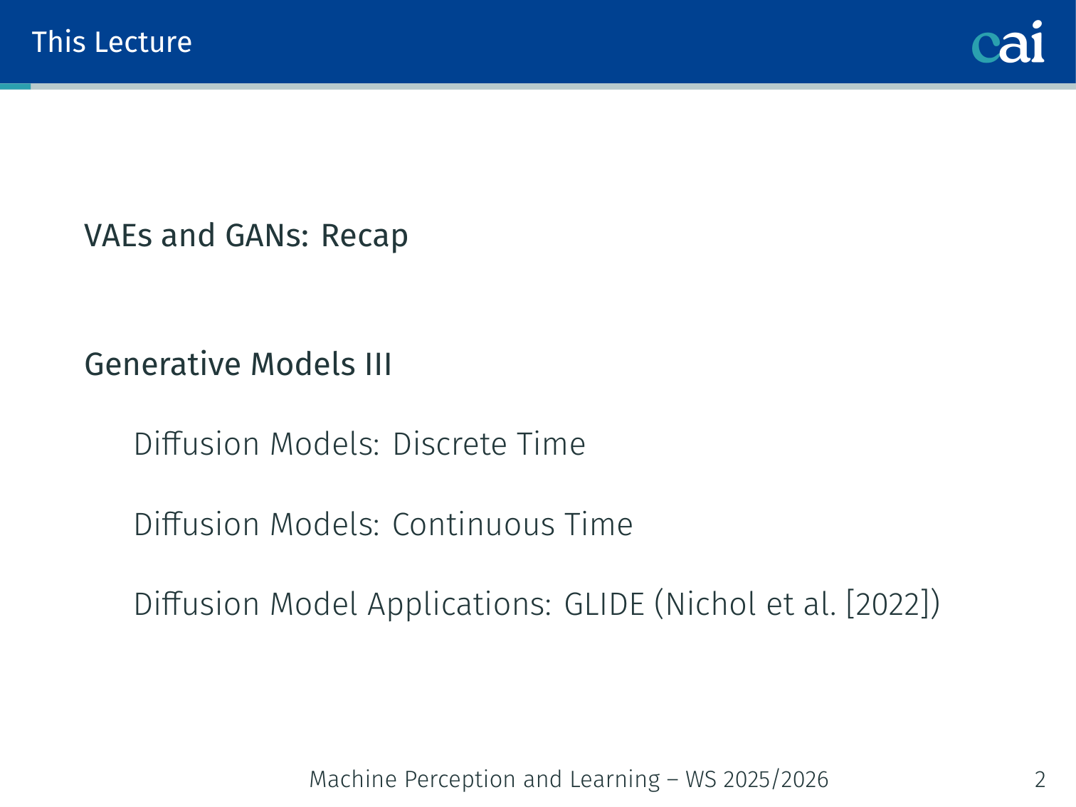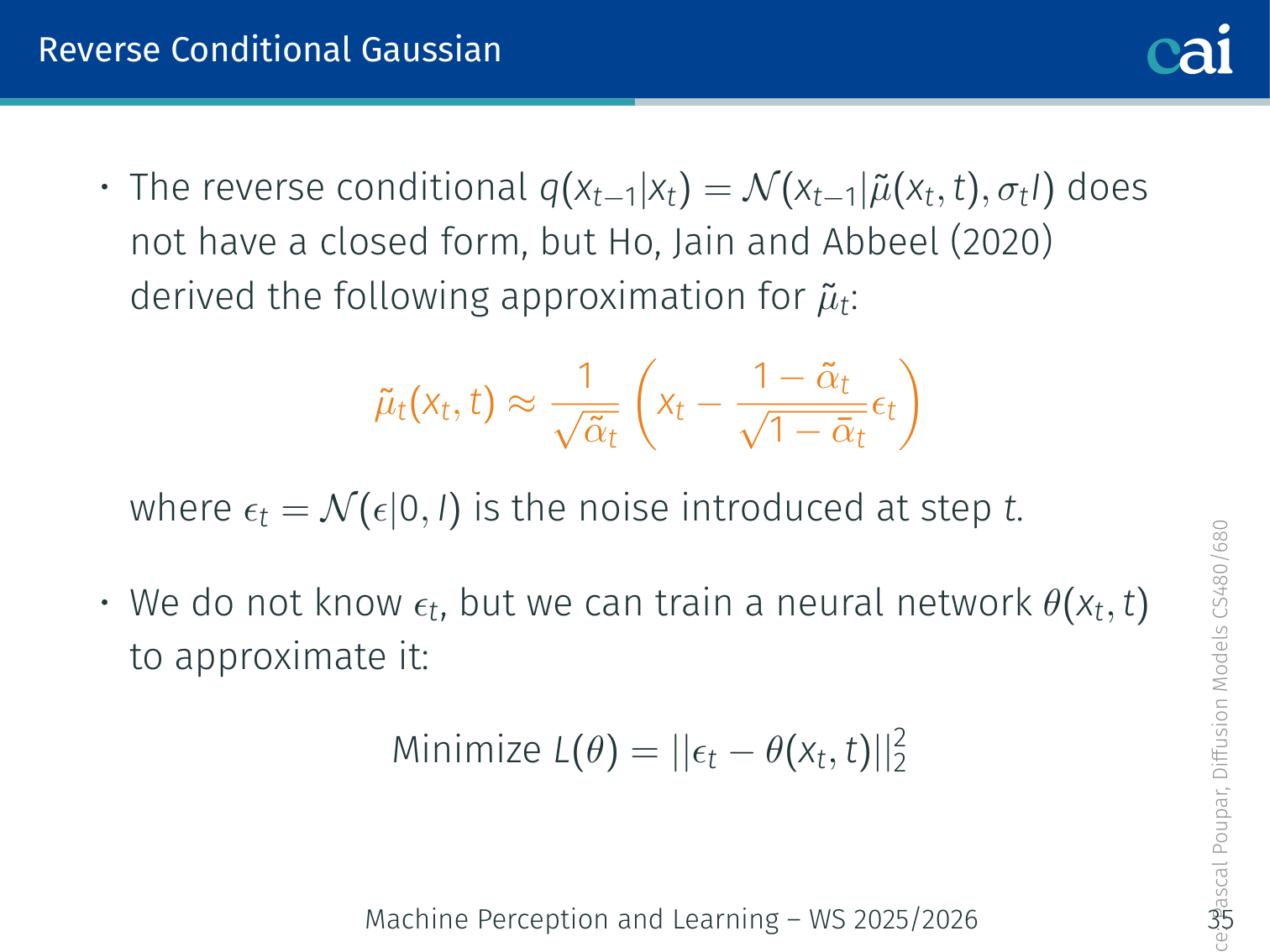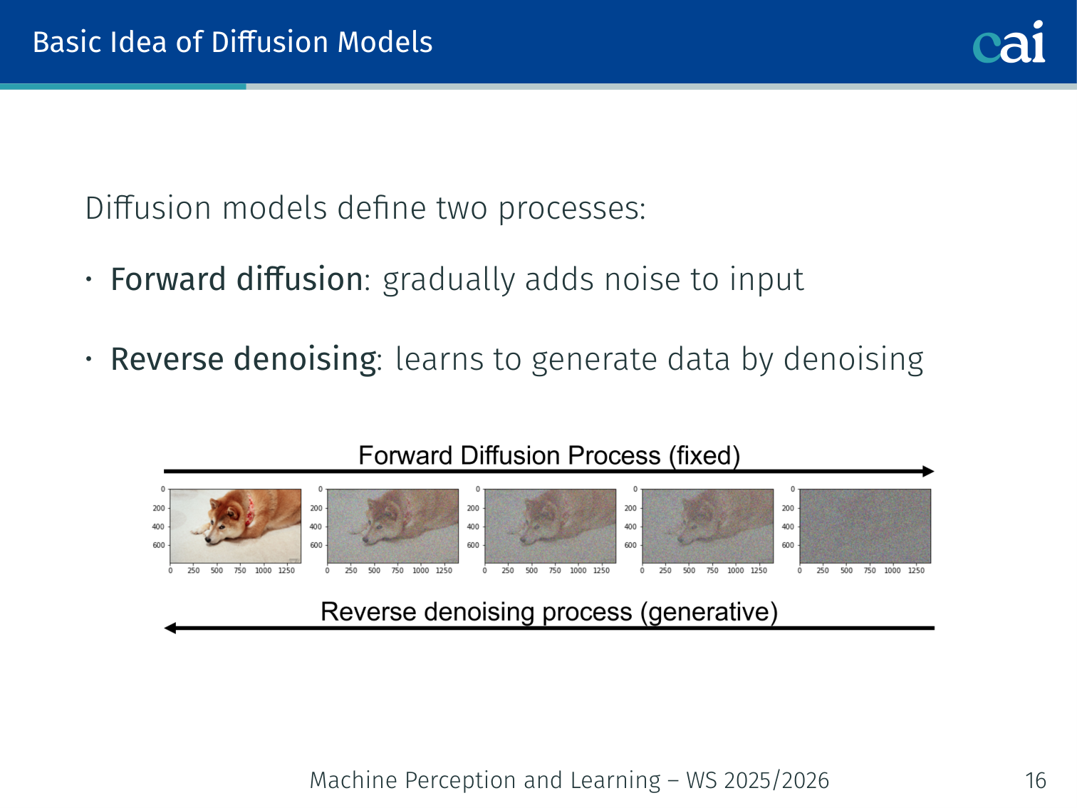 - If one question guides this lecture, let it be: why is reversing a noise process easier to train than generating a full image in one shot?