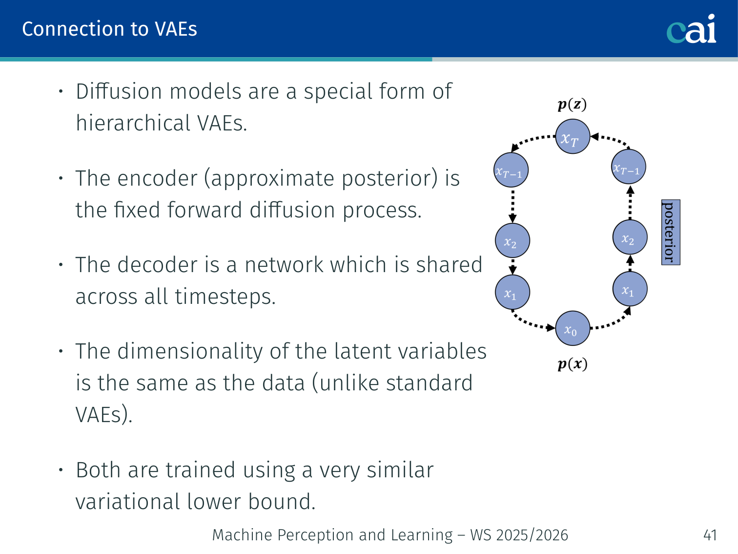 | Connection to VAEs | Diffusion = hierarchical VAE with fixed encoder, shared decoder |