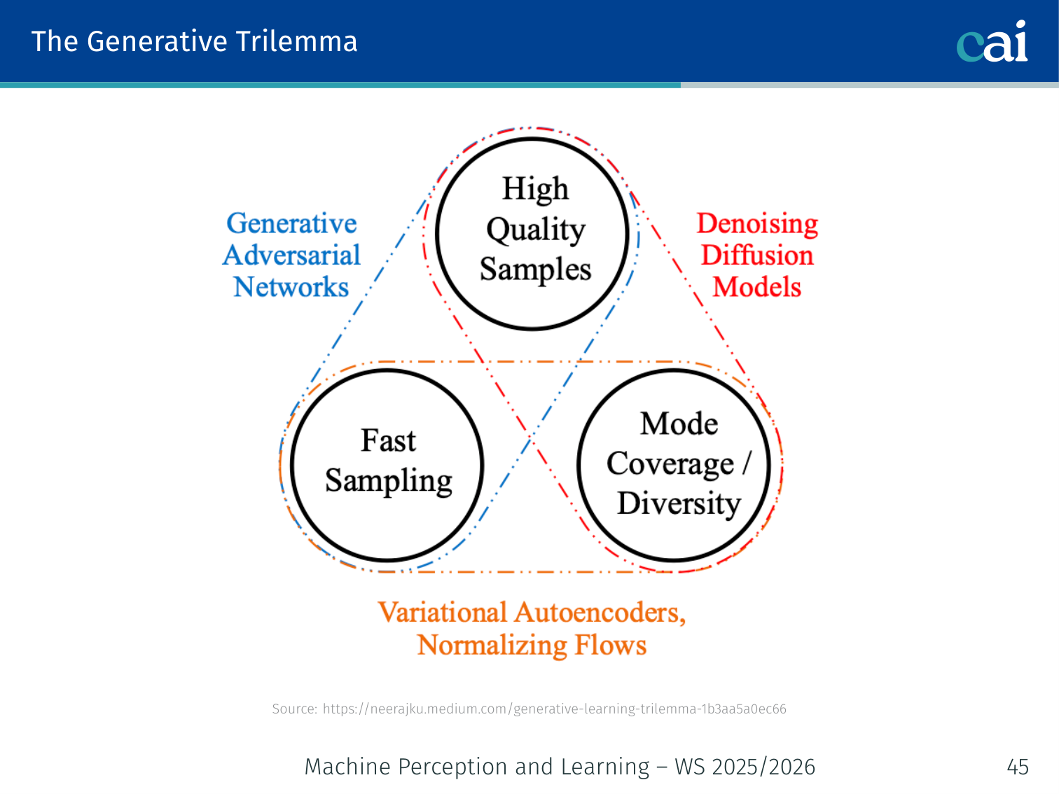 | Generative trilemma | Diffusion: high quality + high diversity, but slow |