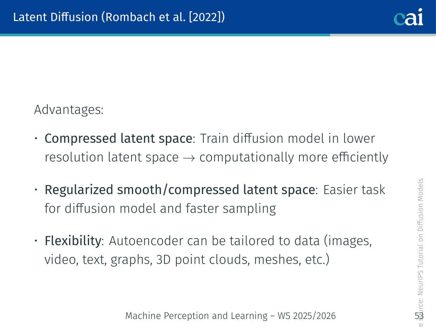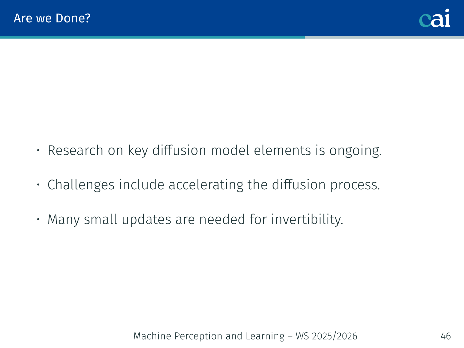 - Hierarchical Connection: They can be viewed as a special form of hierarchical VAE with a fixed encoder. Modern systems like Stable Diffusion leverage this by using a VAE to compress images into a latent space first. → Generative AI & VAE L09