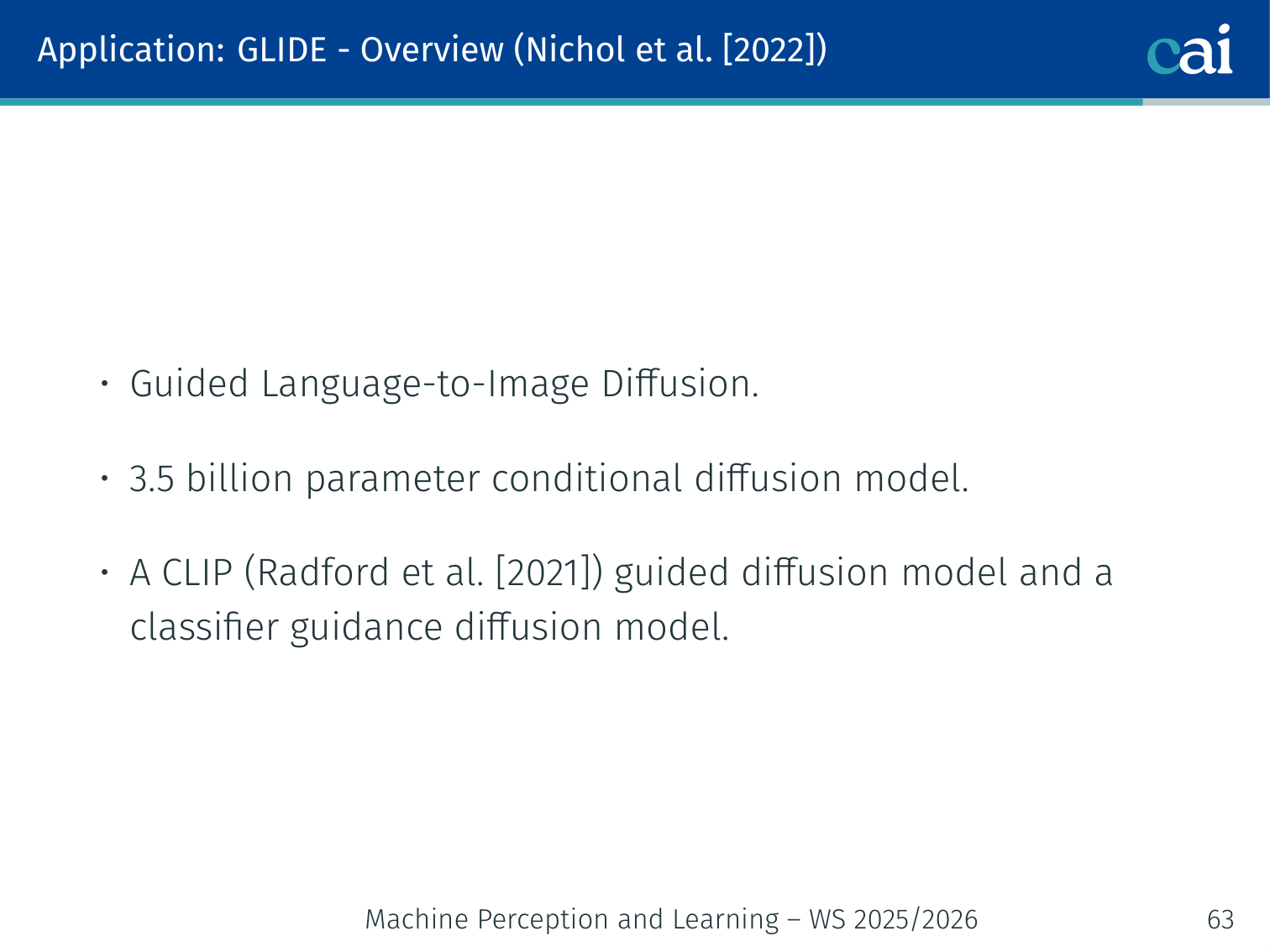 - Diffusion Model Application: GLIDE (Nichol et al., 2022)